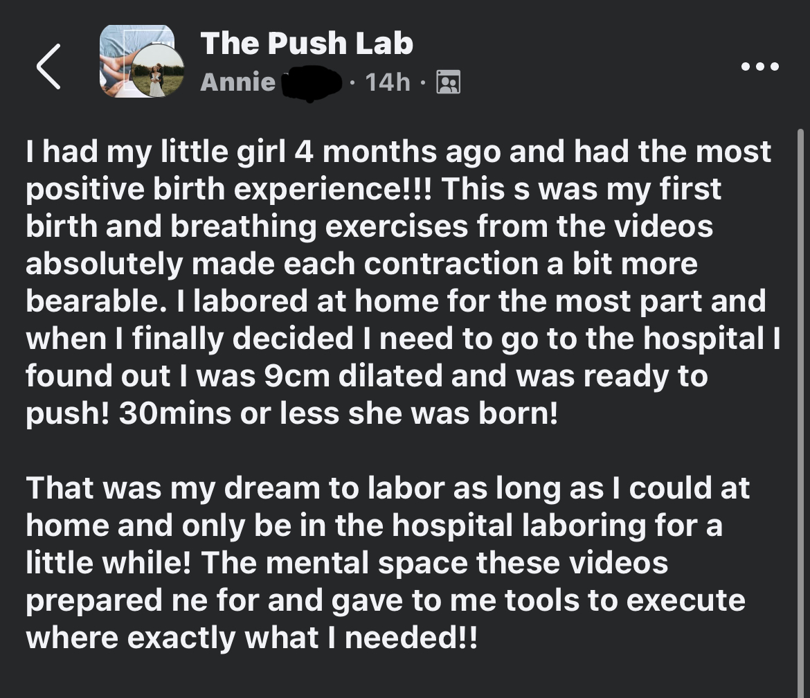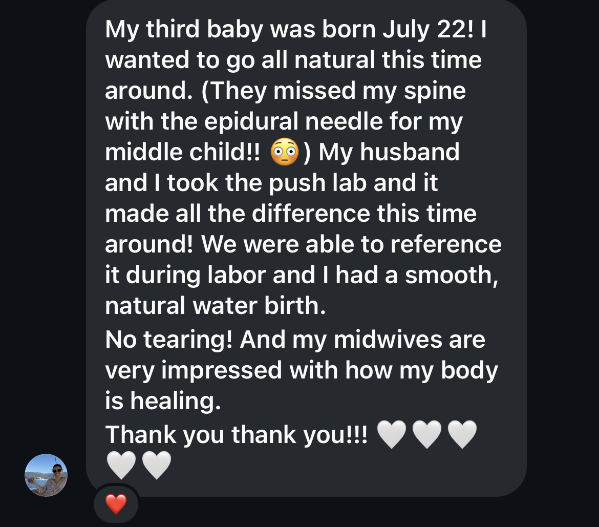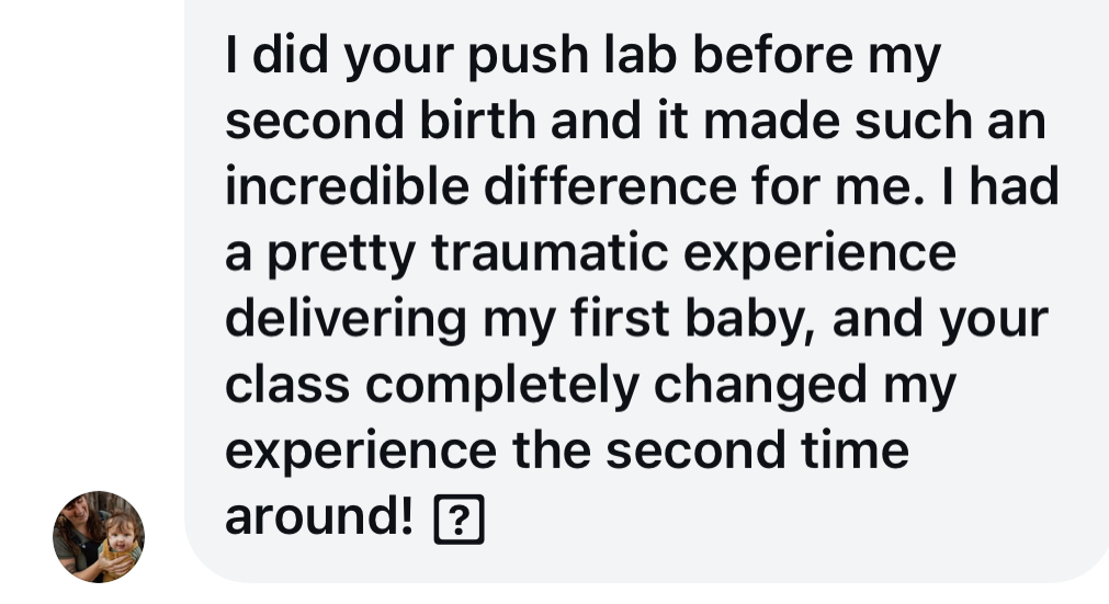 The Push Lab saved me from a day's worth of contractions. My husband was the best birth coach this time around!